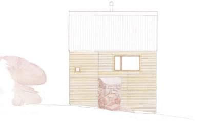 West elevation with stone entry.